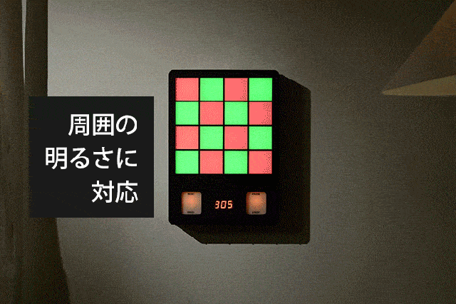 それを防ぐため自動調光機能を設置!周囲の様々な明るさに対応します。