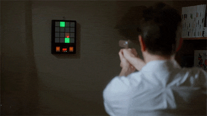 電子ターゲットは45.5×45.5mmの正方形。これはエアライフルターゲットと同じ寸法です。プレイヤーは射撃距離を調整することで、難易度を自由に変更できます。