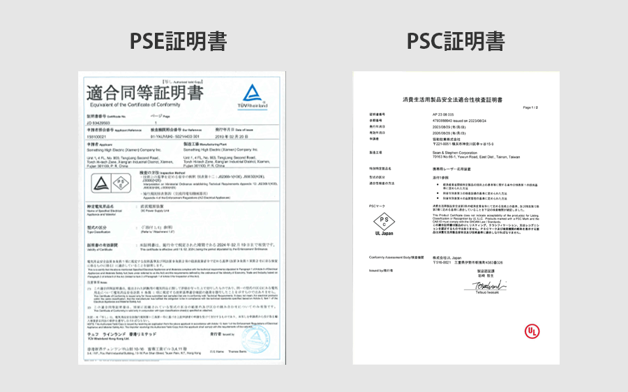 国内の認証機関ULJapanで合格したPSCクラス1のレーザーなので問題無く使用できます。また、VariShotで使用するACアダプターもPSE検査に合格しています。