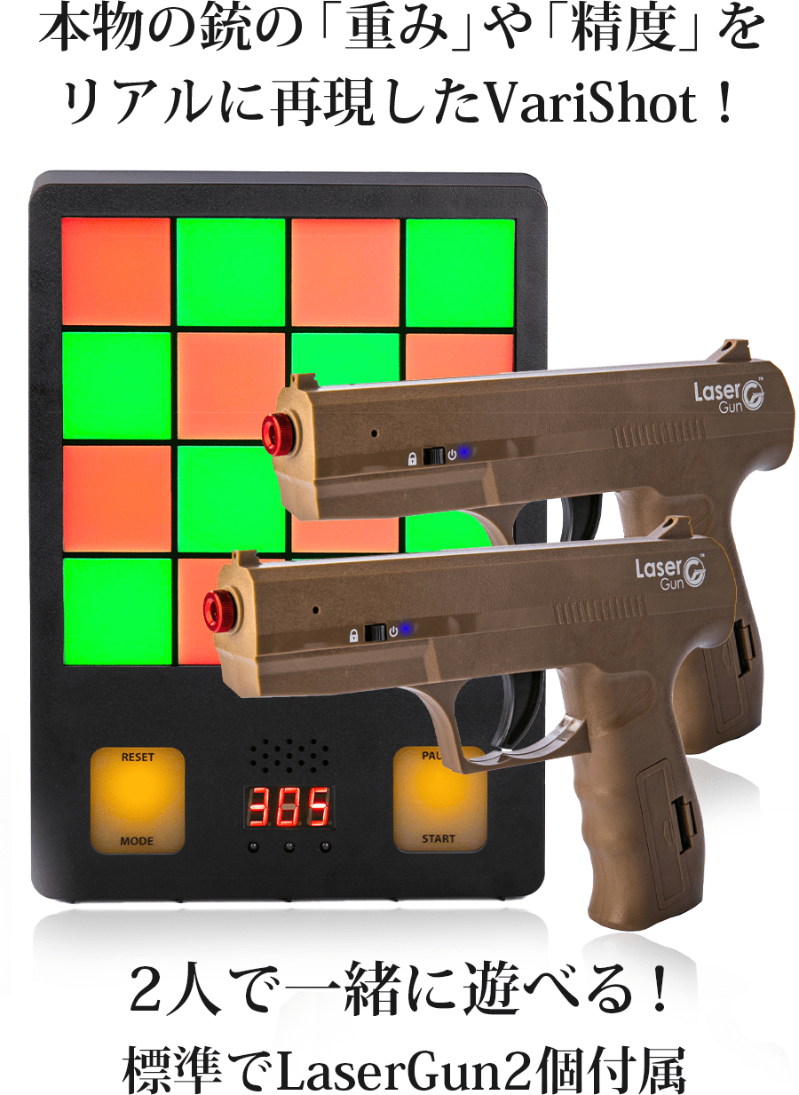 本物の銃に近づけることにこだわったVariShotで臨場感溢れるレーザーシューティングを楽しめます。