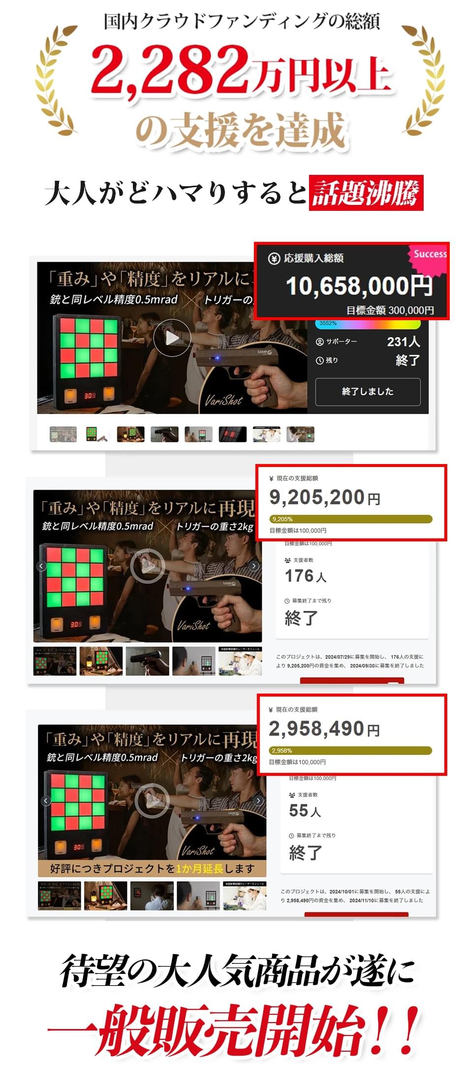 VariShotは、海外クラウドファンディングサイトIndiegogo(アメリカ)とzeczec(台湾)で総額約2650万円、615人から支援を獲得!