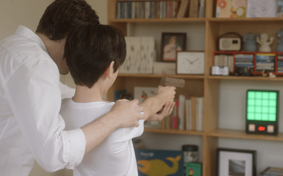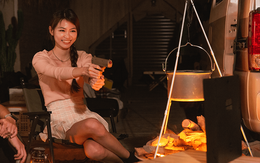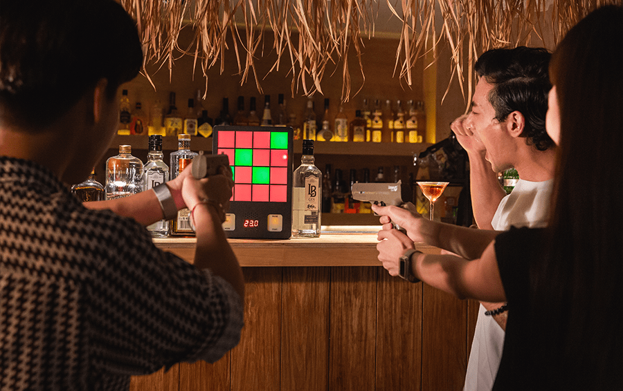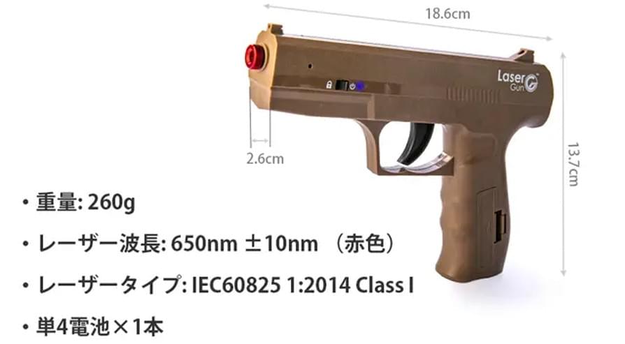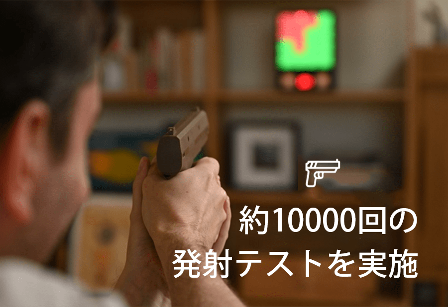 本物の銃と違い、レーザービームで狙撃するため、壁に穴が空いたり、物や人に危害を及ぼす心配もありません。
