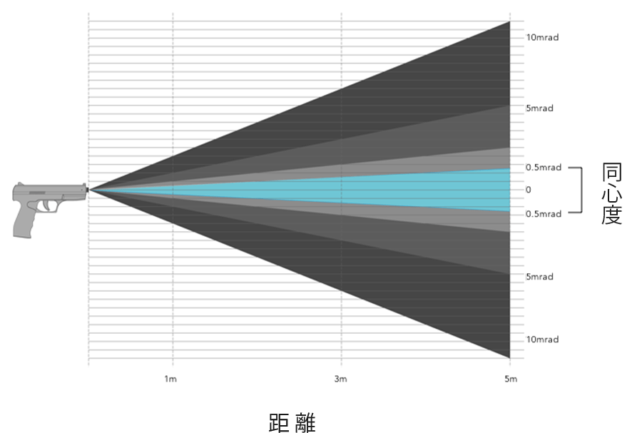 VariShotに採用されたレーザーモジュールは、いかに本物の銃に近づけるかを考え抜き、銃と同レベルの精度を誇る0.5mradに設定しました。